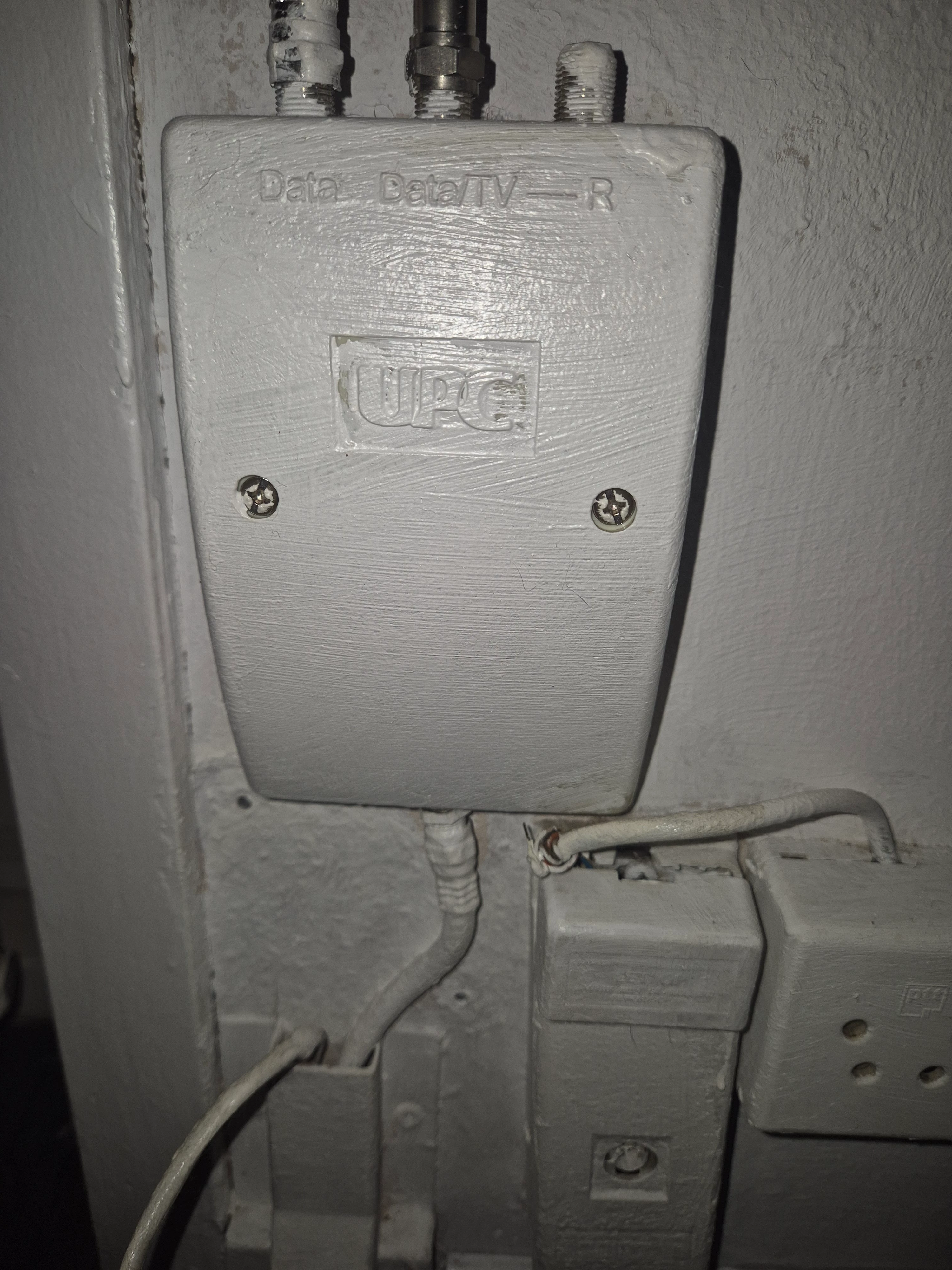 Wij gaan wonen in een tijdelijke huurwoning (de woning wordt ergens vanaf 2027 gesloopt), dus de beheerder gaat waarschijnlijk niks meer laten opknappen en verbeteren. In het appartement zitten in de woonkamer de volgende kastjes/aansluitingen voor internet/tv/telefonie.