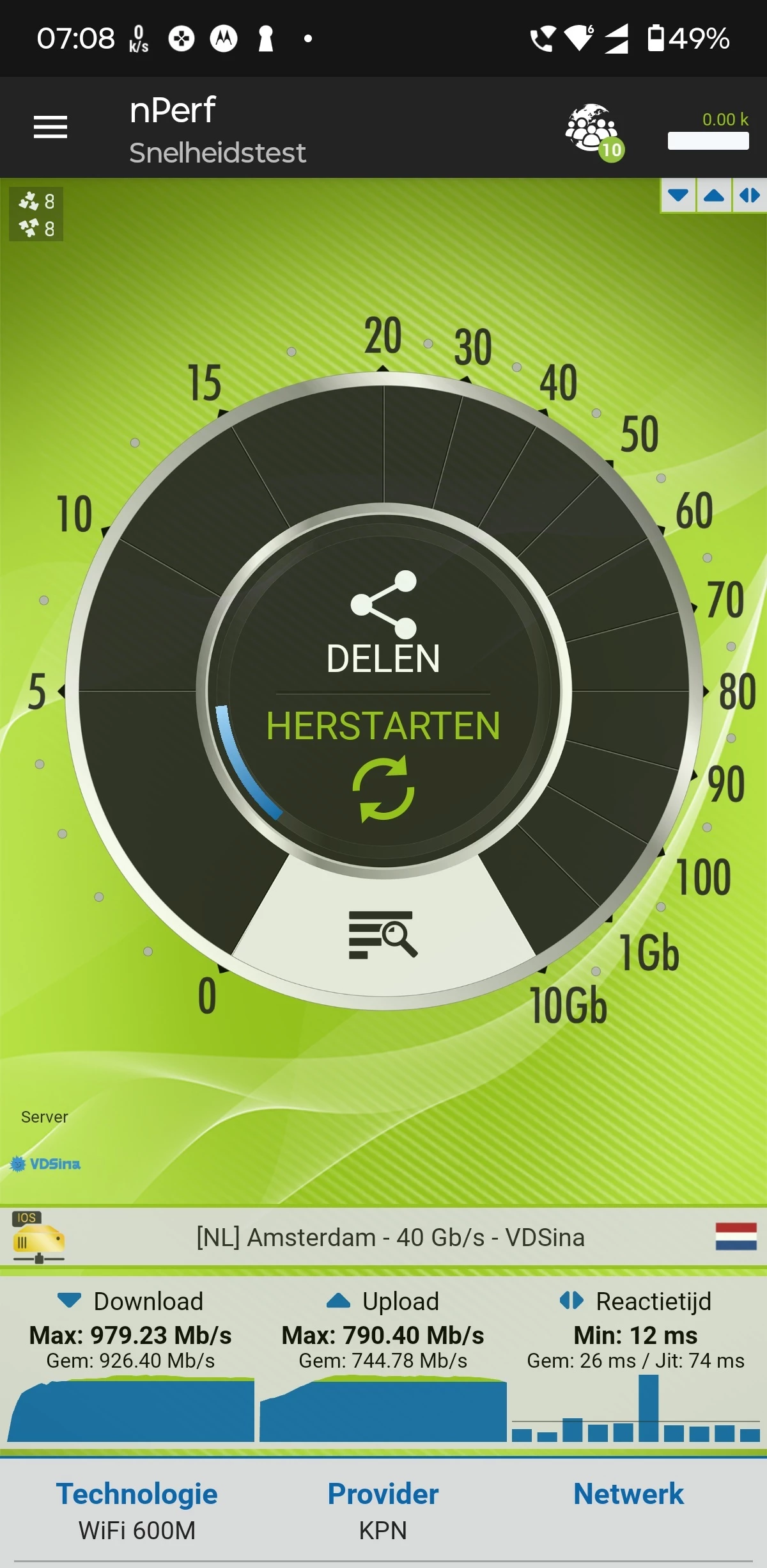 Echter niets werkt, download snelheid blijft rond de 350-375 gemiddeld en upload rond de 700-750 en soms zelfs tot over de 800.