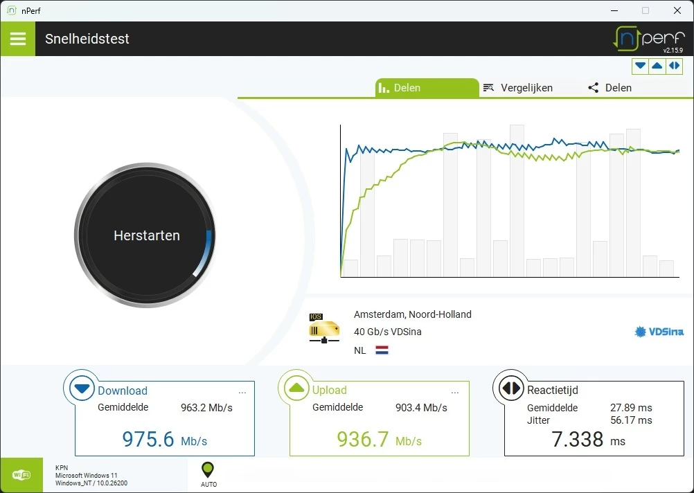 Als je het ding bekabeld aansluit, welke snelheid haal je dan?