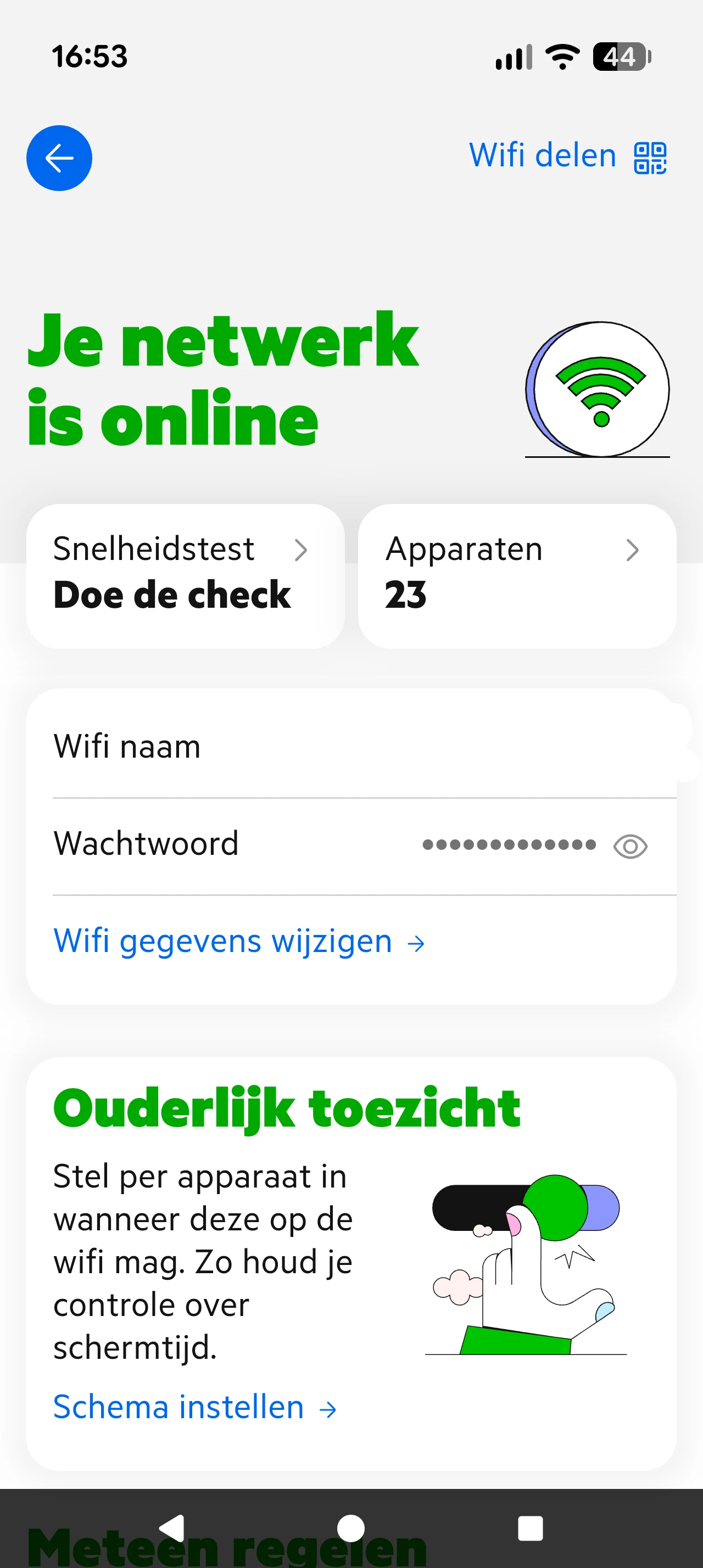 Op de een of andere manier voelt het versnipperd, ik had eigenlijk een landingspagina verwacht waar je direct de SuperWifi punten ziet, de ontvangststerkte, en de optie 'Wifiversterkers slim plaatsen'.