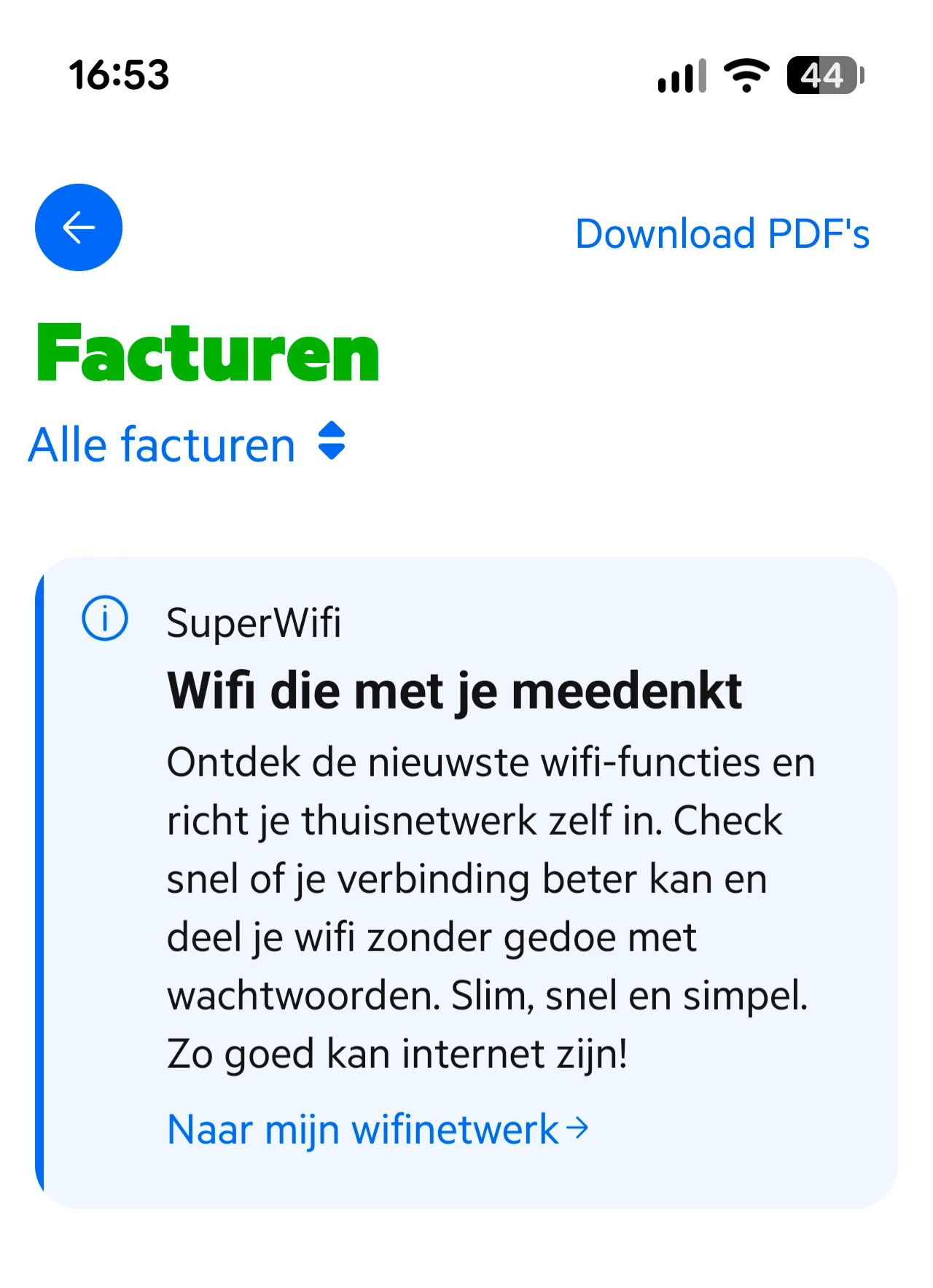 Gewoon een observatie als ik naar de facturen in de MijnKPN app kijk. Ik zie dan (nogmaals) de tekst 'Wifi die met je meedenkt' (stond ook al op de startpagina van de app).