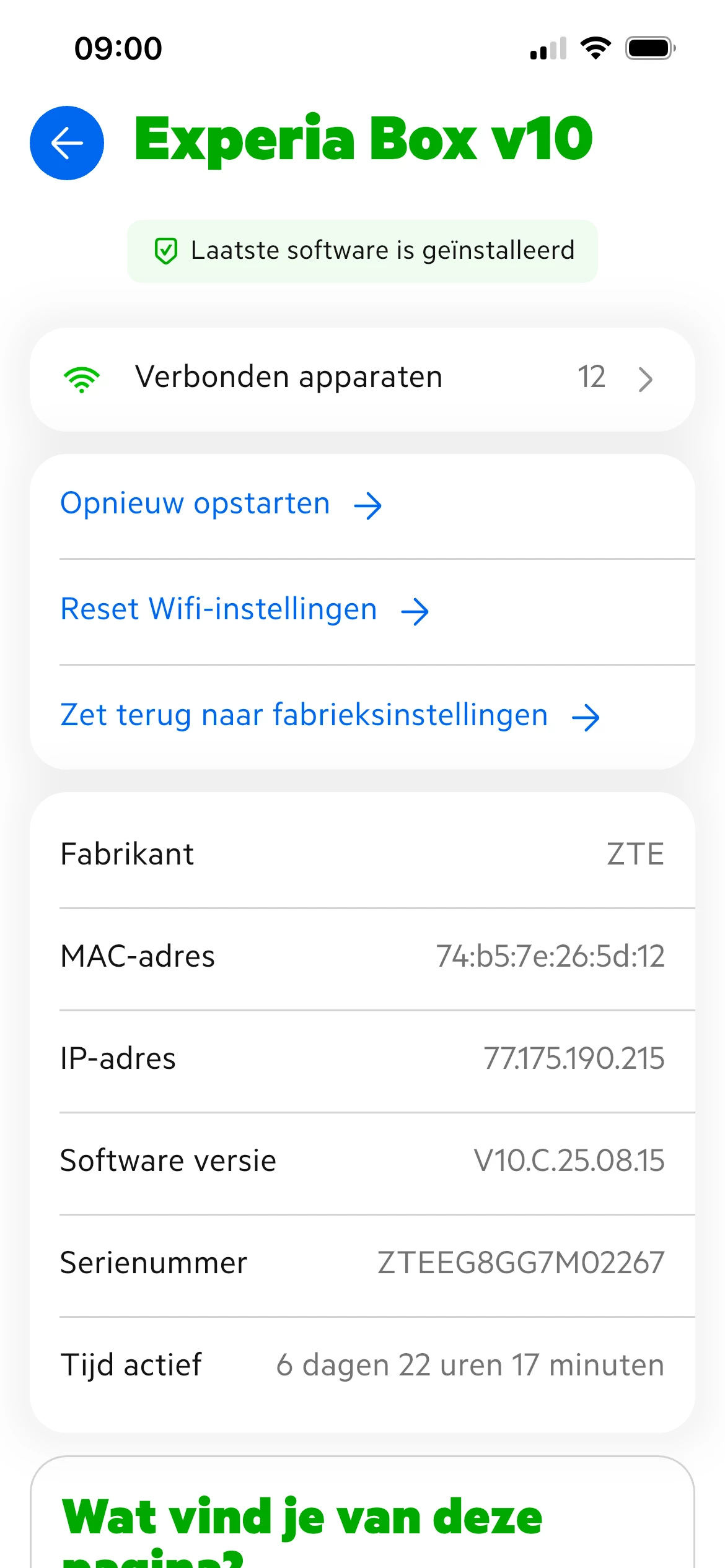 zal de herstart in de modem eens proberen . Wel al via de app gedaan