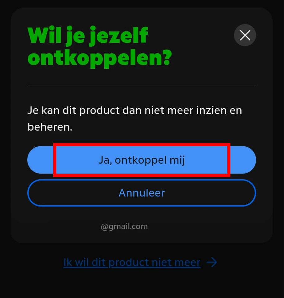 5. Bevestig jouw keuze door op Ja, ontkoppel mij [rood] te klikken.