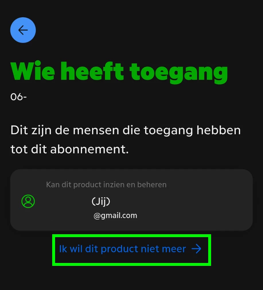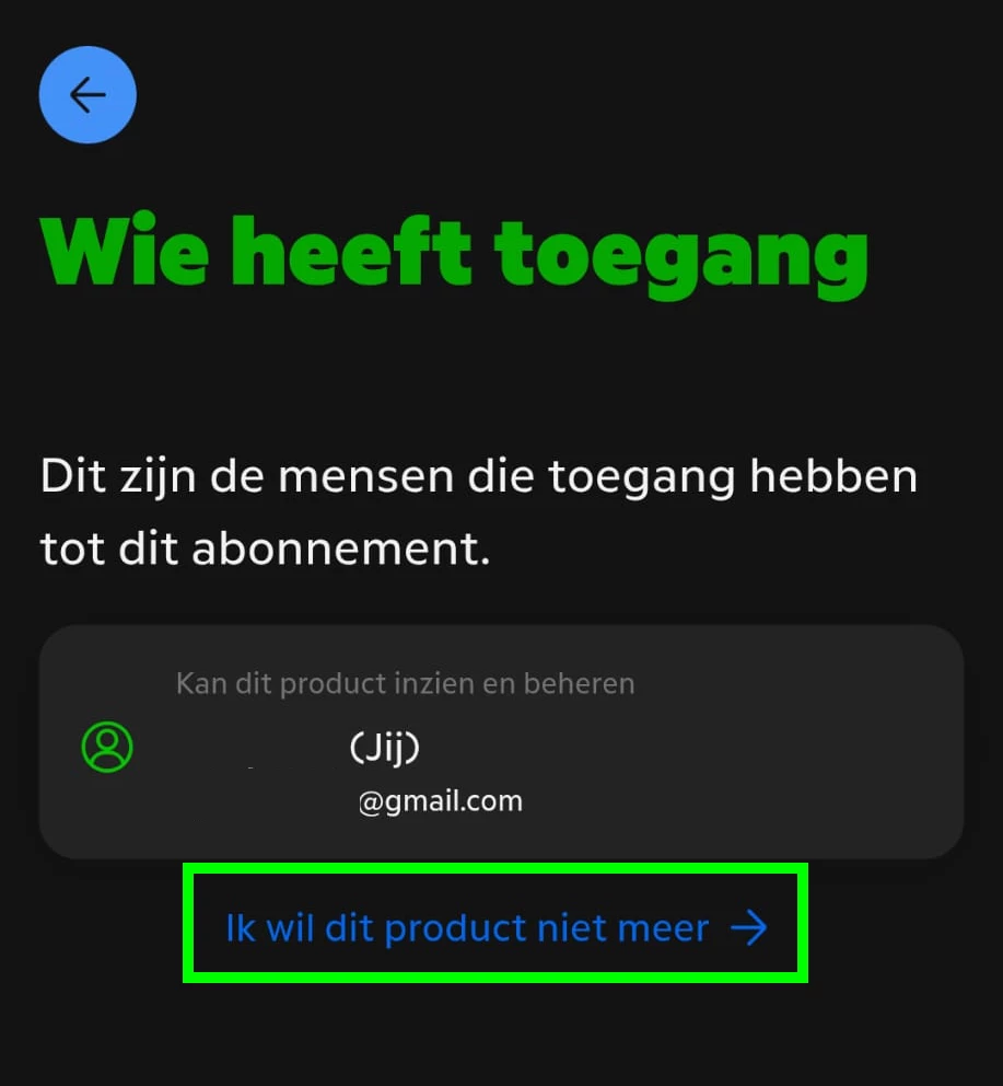 4. Klik op Ik wil dit product niet meer [groen].