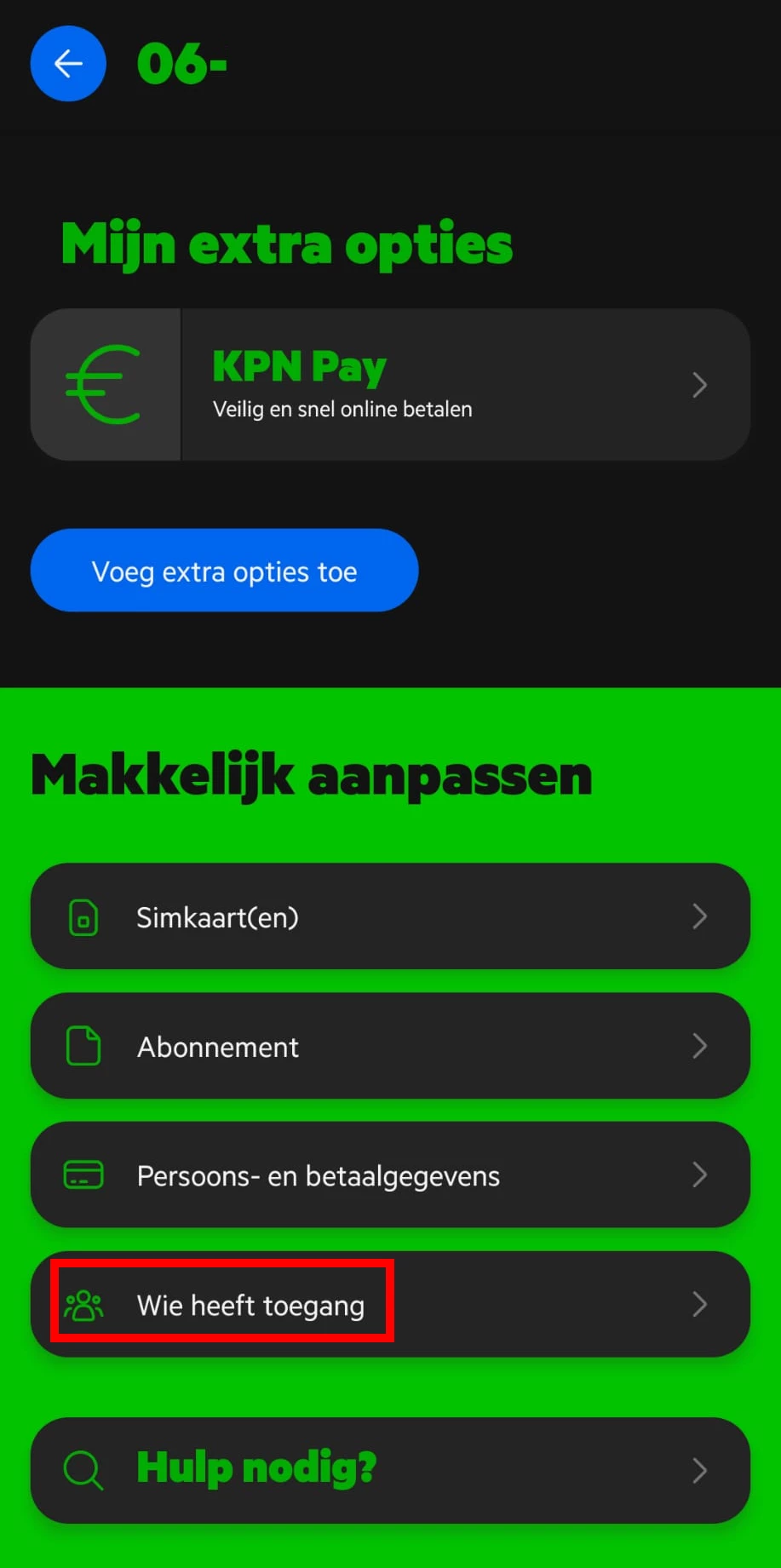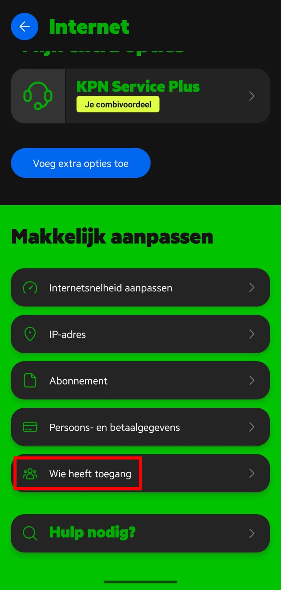 3. Scroll naar beneden en ga naar Wie heeft toegang [rood].