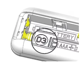 Dat kan je bekijken door het klepje voor de batterijen eraf te halen en de batterijen eruit te halen: