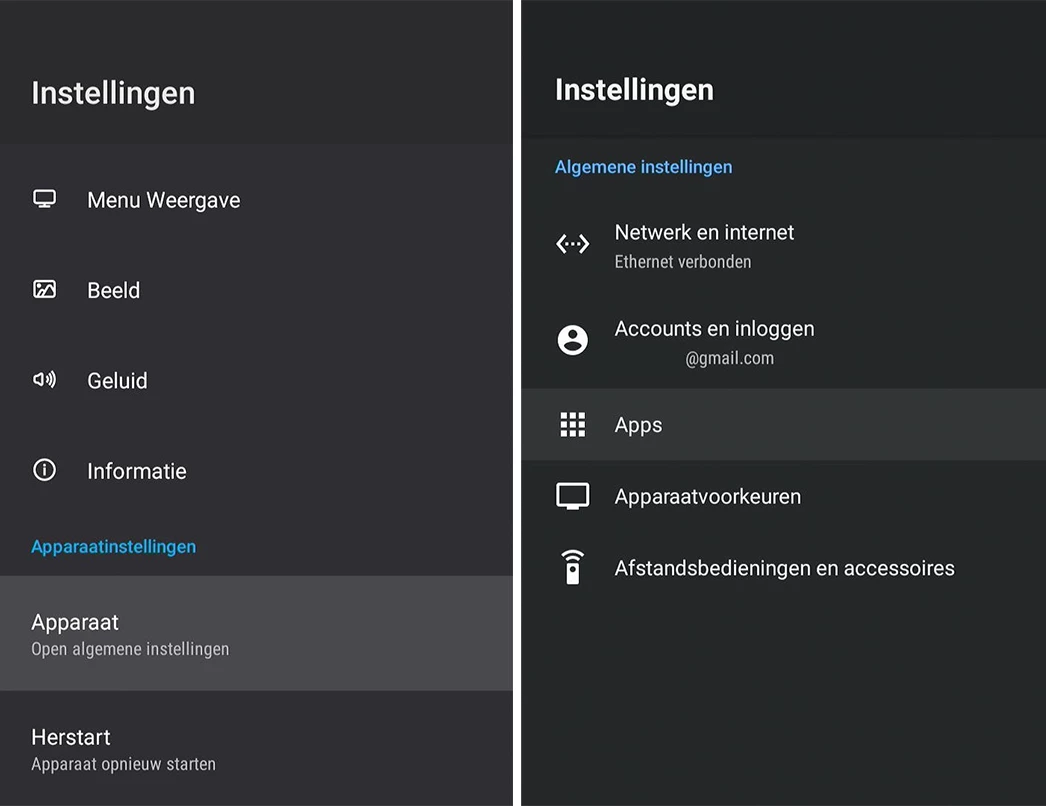 Kies voor Apparaat (Open algemene instellingen) en ga naar Apps.