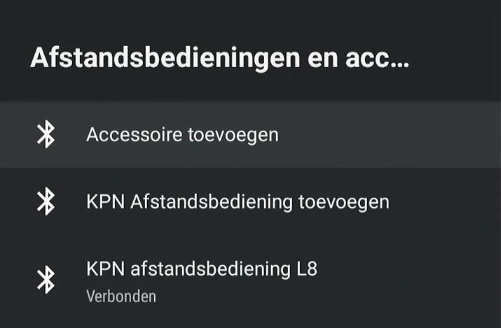 Je kunt hier kiezen uit het koppelen van een eigen bluetooth apparaat, zoals bijvoorbeeld een koptelefoon of een controller. Of het toevoegen van een Comfort+ voor TV+ afstandsbediening van KPN.