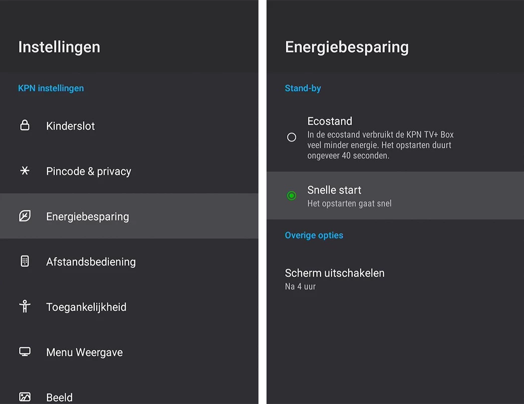 Energiebesparing en ecostand op KPN TV+ Box uitzetten en instellen