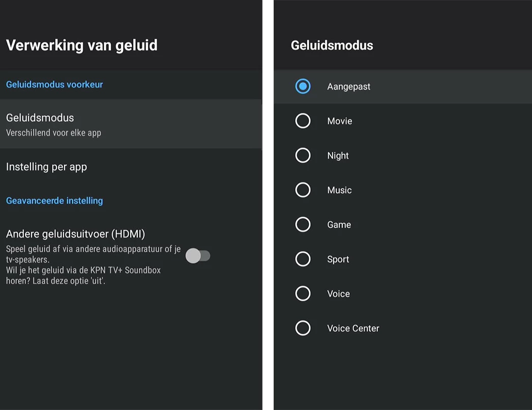 De KPN TV+ Soundbox heeft diverse geluidsinstellingen om je luisterervaring te verbeteren. Ontdek hier wat elke modus doet: