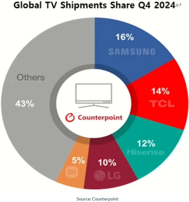 De Nr. 2 en Nr. 3 samen (allebei Google TV) hebben dezelfde verkoopcijfers dan Samsung+LG plus de andere TV fabrikanten (meeste Android TV) en Setopboxes (ook meest Android of AndroidTV)