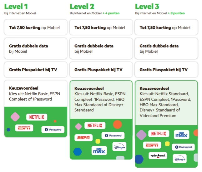 Mijn ouders hebben nog een oude Telfort abonnement waarin ze konden kiezen uit onder andere 5 euro combikorting op internet. Momenteel hebben ze genoeg punten voor level 3 combivoordeel. Stel dat ik of een van mijn ouders (woon nog onder hun dak) kiezen uit die keuzevoordelen, betekent dat dan dat ze die combikorting verliezen?