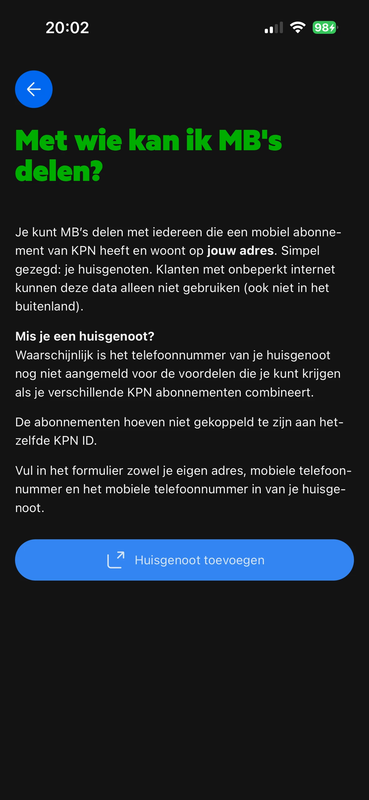 Ik kan mijn huisgenoot niet toevoegen aan mijn huishouden in de mijnkpn app