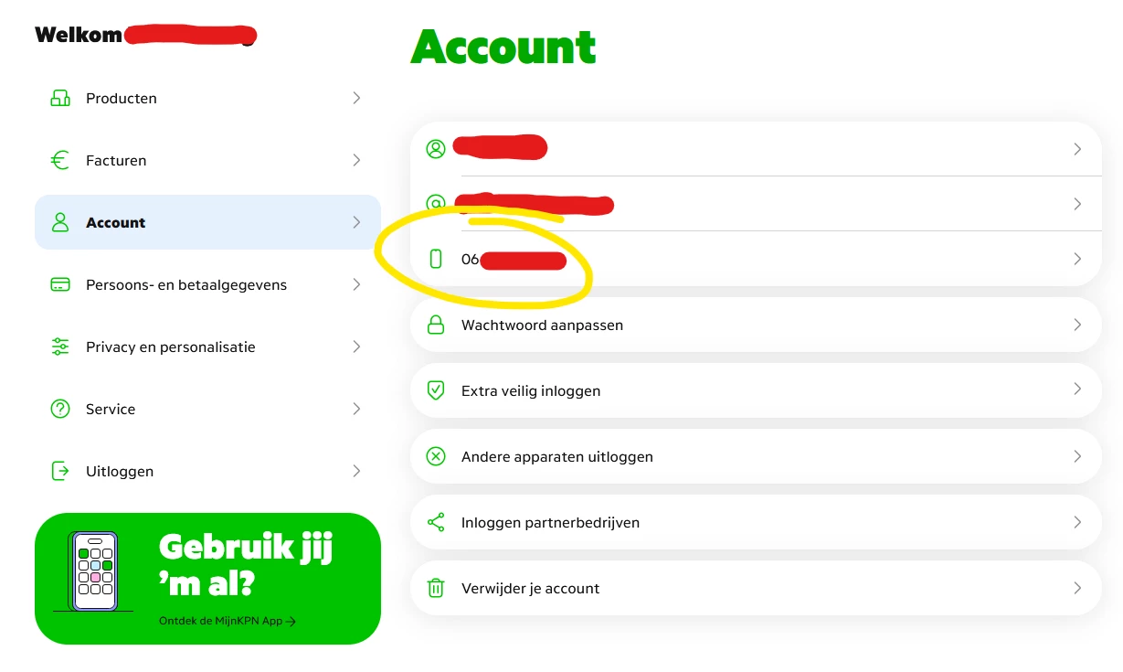 Laat jouw ex controleren welk 06-nummer staat onder MijnKPN > Account