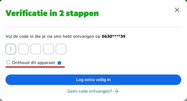 Je kunt trouwens ook je laptop/PC markeren als betrouwbaar apparaat en dan hoef je de komende tijd geen code meer in te voeren. Dat kun je doen in het scherm wanneer je de code invoert.
