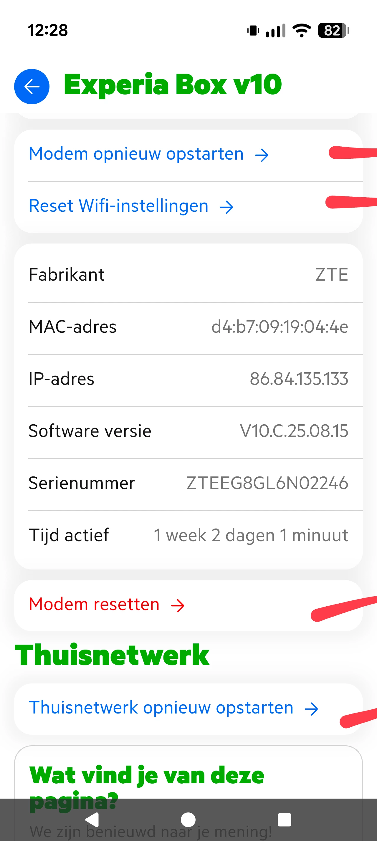 Het voelt voor mij logischer als al deze instel opties handig bij elkaar stonden. De optie 'Thuisnetwerk opnieuw opstarten', zie ik pas door naar onderen te scrollen.