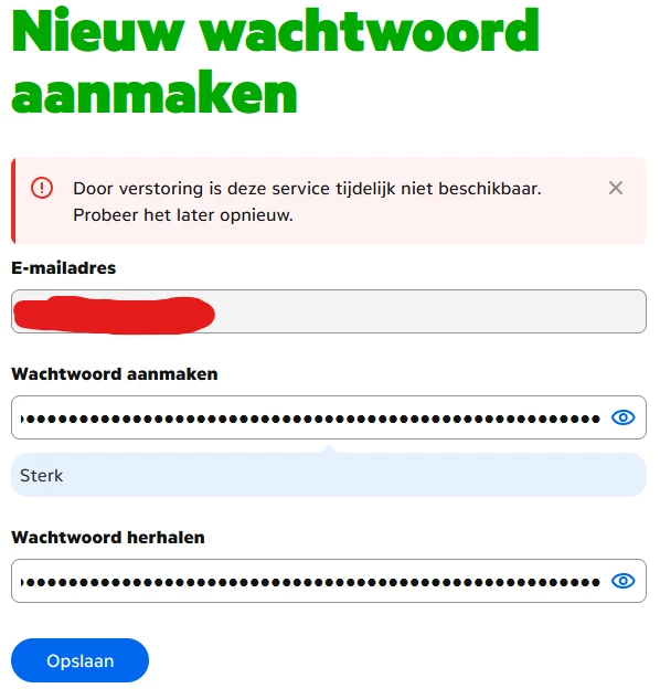 Wanneer ik mijn huidige wachtwoord door 1Password laat invullen en het nieuwe wachtwoord kopieer in de vakken, krijg ik de foutmelding “Helaas is er wat verkeerd gegaan probeer het nogmaals.”