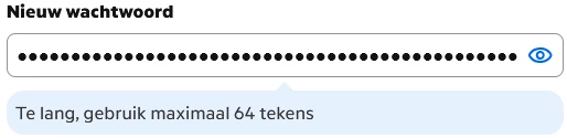 Het is ergens natuurlijk super overdreven, maar door het gebruik van een password manager maakt de lengte niet meer uit en doe ik random wat. Ik kreeg een melding dat je wachtwoord maximaal 64 tekens mag zijn: