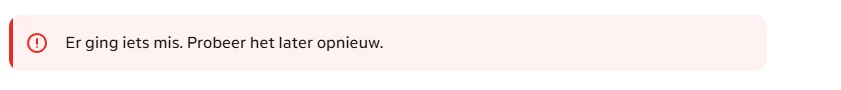 Ik krijg de volgende foutmelding: Er ging iets mis. Probeer het later opnieuw.
