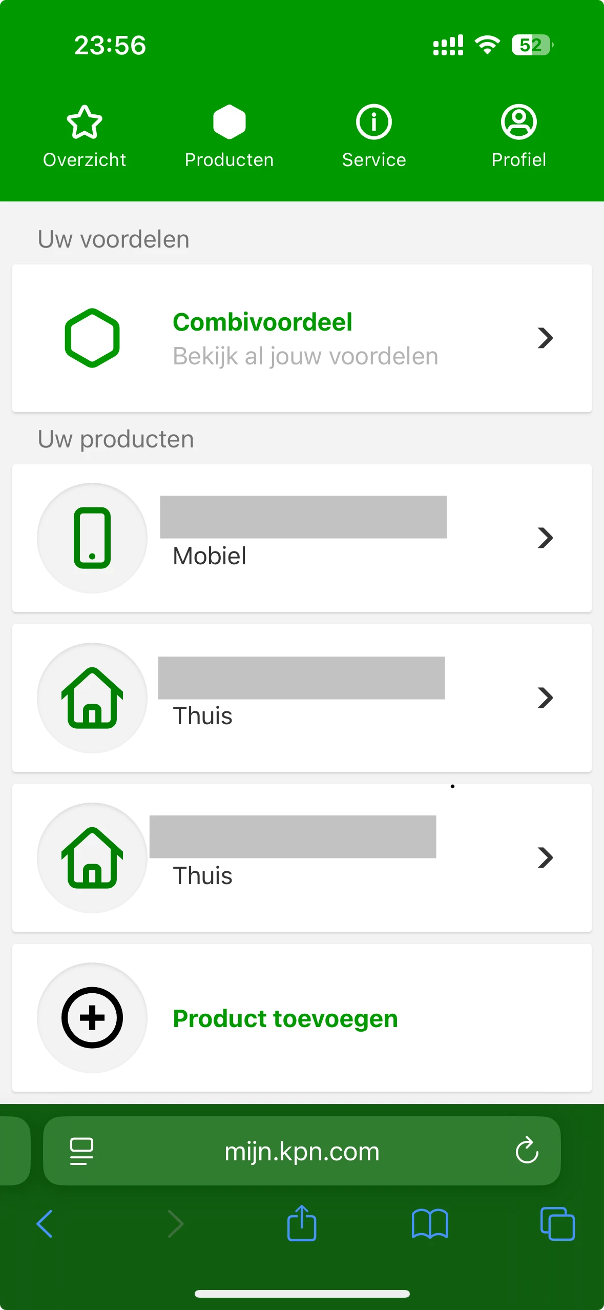 2. Ga onderin naar het tweede tabblad Producten, en kies daarna jouw Thuis abonnement (Internet/TV).