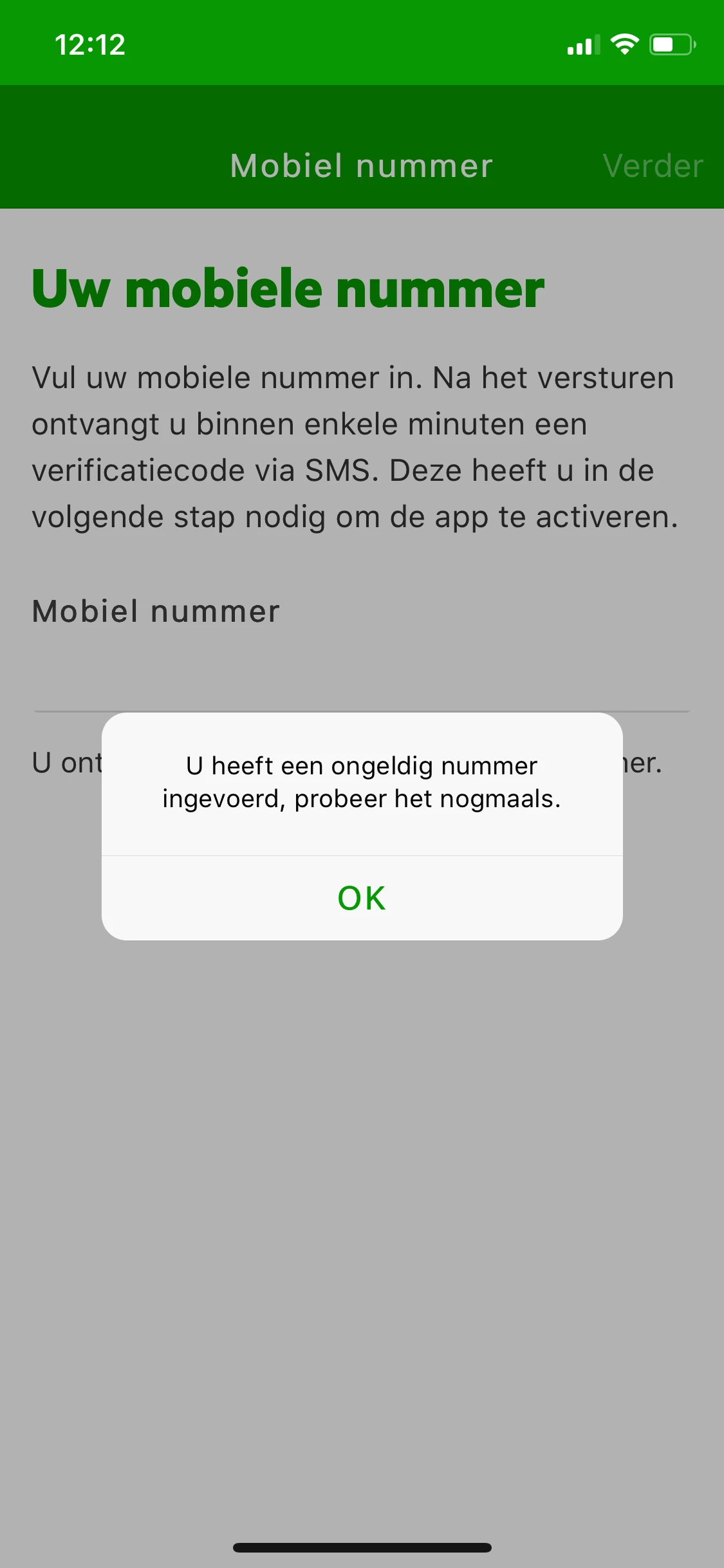 Vul ik daar mij 06-nummer in komt de foutmelding: ongeldig nummer. (derde afbeelding in de bijlage)