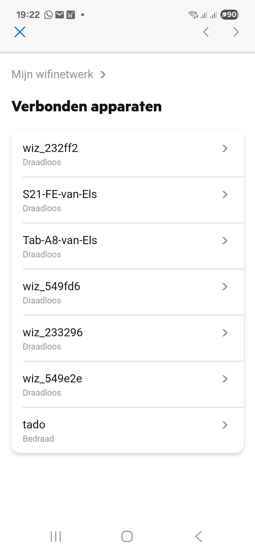 Ingelogd met tablet in Mijn KPN. Tikte op Wifibeheer. Moest het systeem laten gaan. Alles kwam weer tevoorschijn. Mijn wifinetwerk geopend. WiZ, WiZ, met nummers erachter wat niet belangrijk is. En telde er nog twee. Alle 4 de lampen waren weer verbonden met de modem. Hoera! Gelukt..Dus dat de reactie van de ontwikkelaar bij mijn review en Mijn KPN alleeen met tablet in Google Play store te zien is en niet ook in smartphone in Google Play store en bij Mijn KPN dat is dan niet anders. Als dat niet opgelost kan worden dan mag dit gesprek wel als afgesloten gemarkeerd worden, KPN..Problemen met wifibeheer heb ik niet meer, KPN.