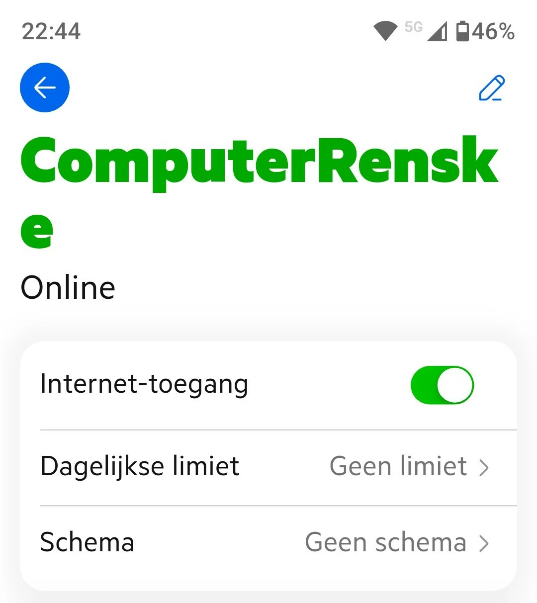 nee, dit is niet correct, ik heb nu dagelijks van 7 tot 22 uur groen gemaakt en om 22 valt internet dan weg op het specifieke device. Dus niet andersom.
