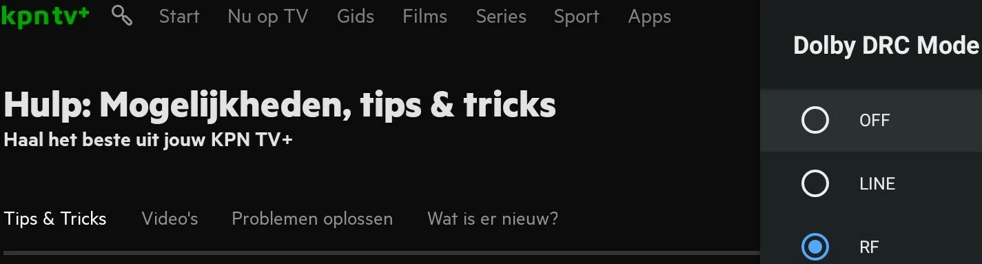 Kijk in instelling of DRC Mode op RF staat. Dit maakt menselijke stem beter verstaanbaar en onderdrukt omgevingsgeluid. Het werkt alleen bij zenders met Dolby geluid.