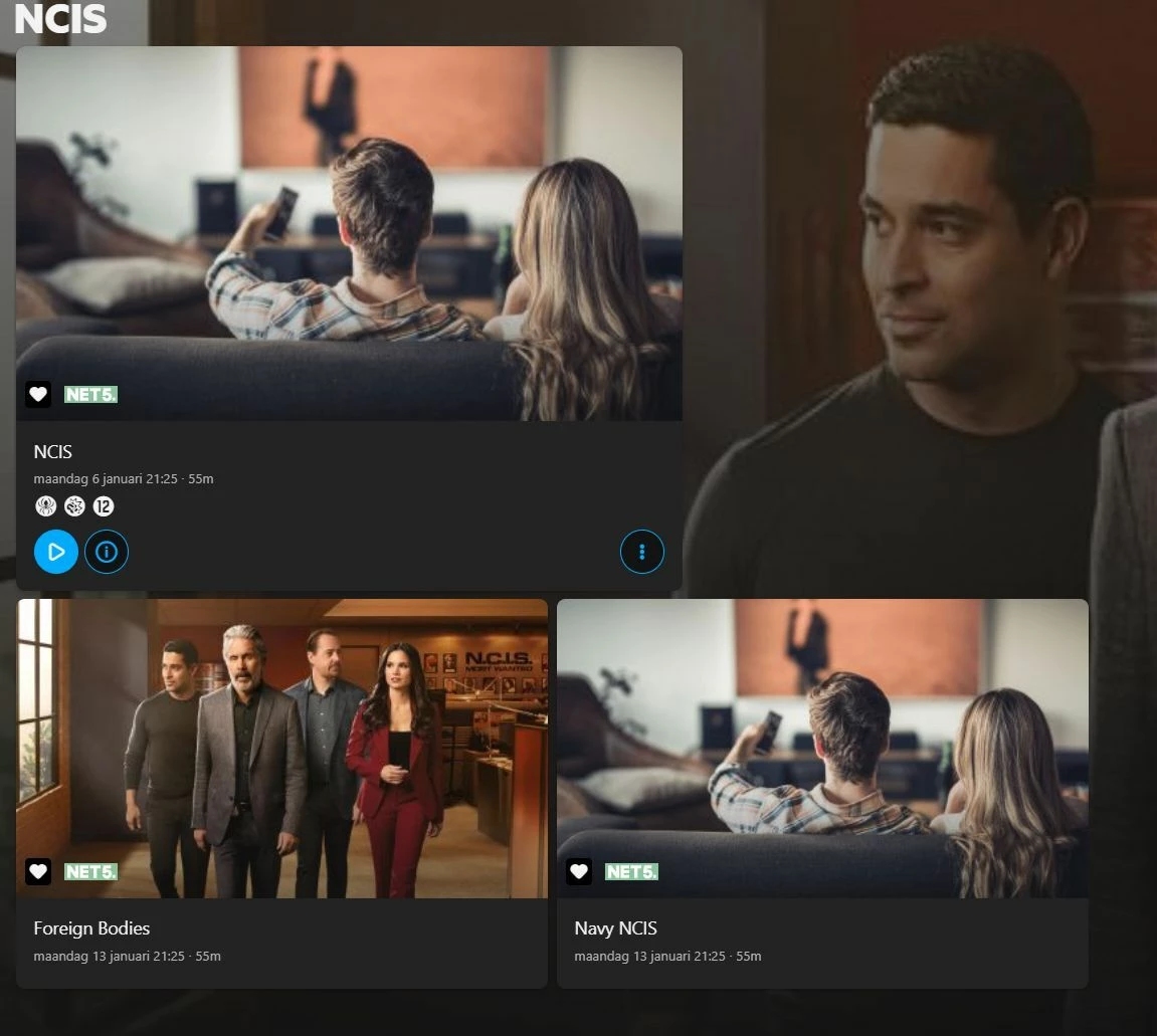 Dit wordt hem waarschijnlijk dus niet. Er zijn inderdaad verschillende opties nu. Ik heb nu NCIS met instellingen.  Daaronder 20 januari S 22  A 3 met instellingen.