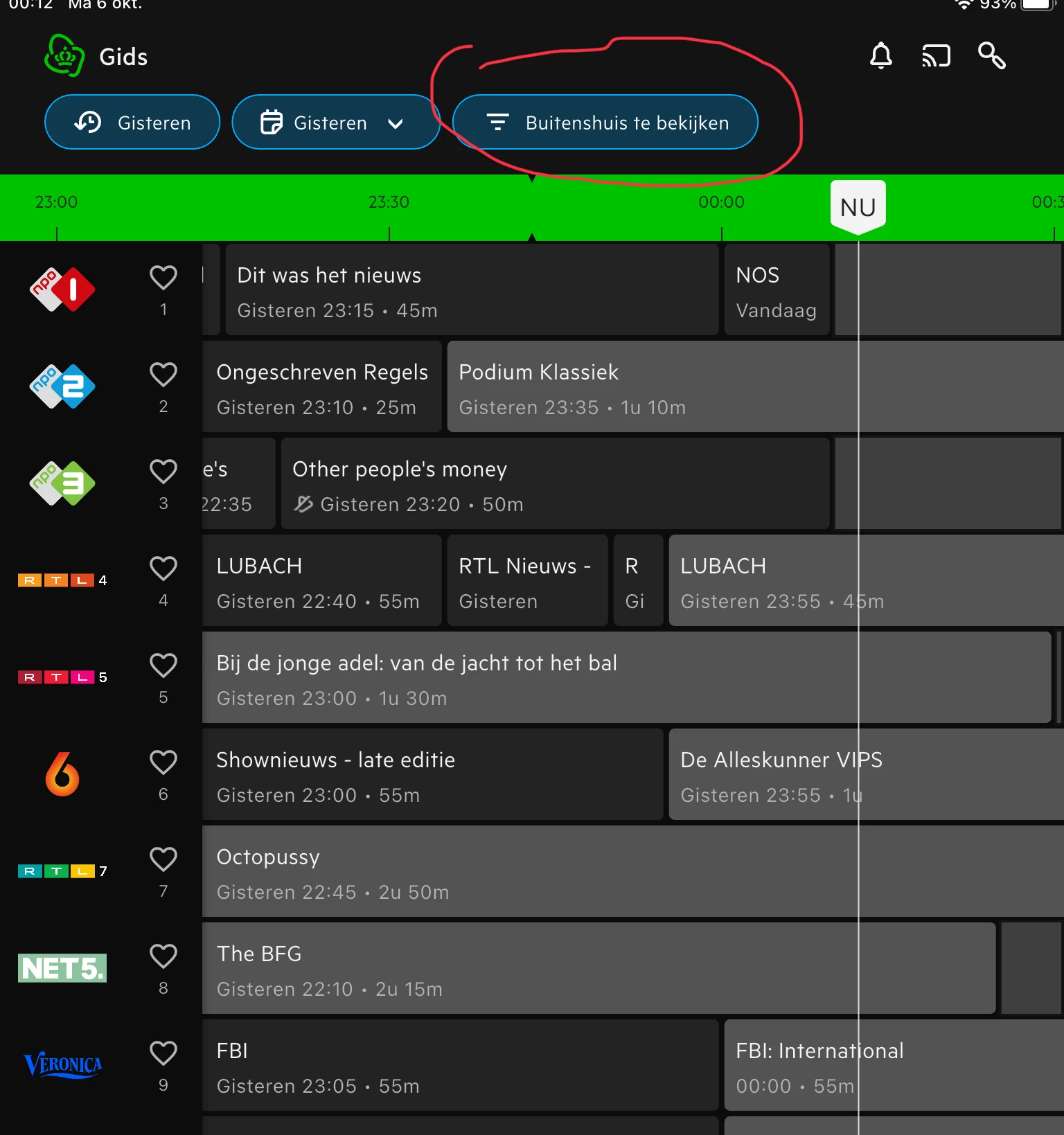 Als je bovenin “buitenshuis te bekijken” kiest kun je zien welke zenders het betreft
