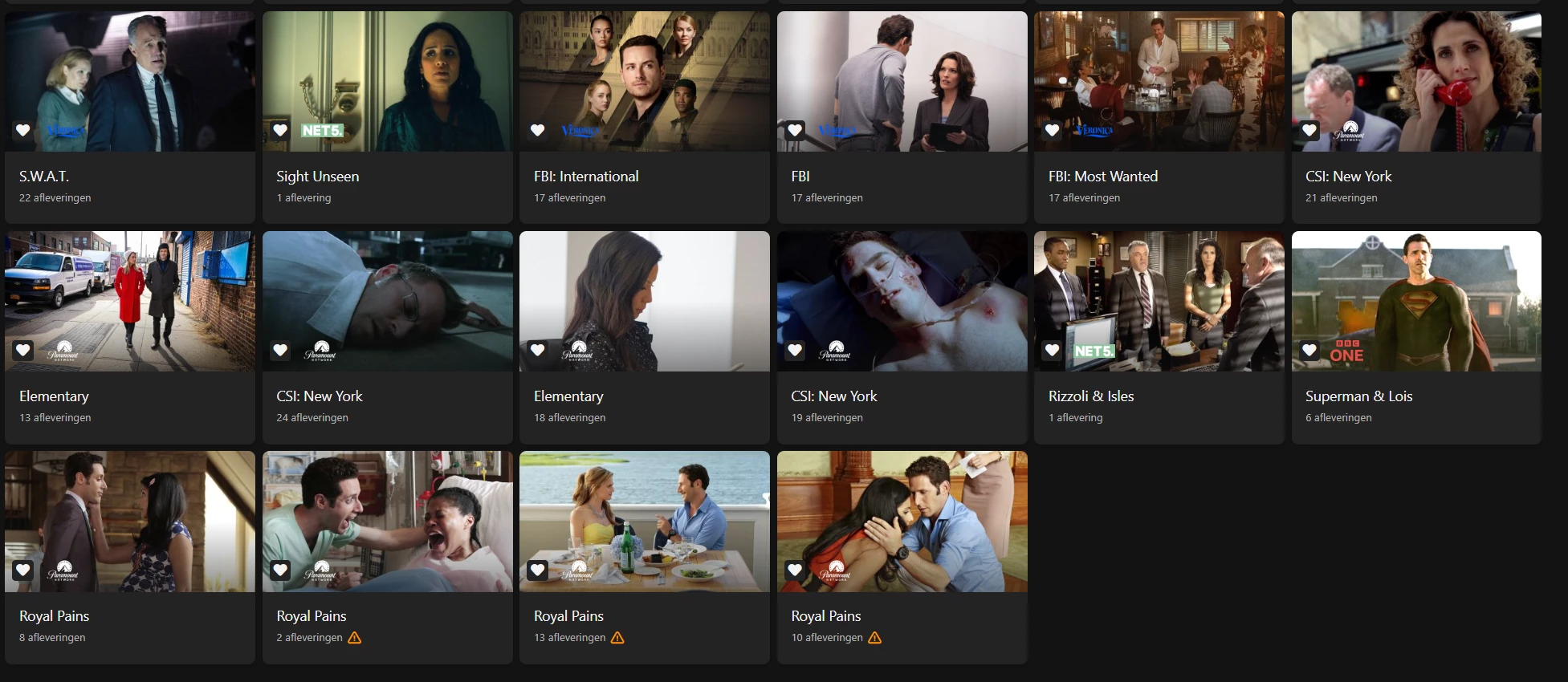 Niet afleveringen voor 1 serie maar alle afleveringen over alle series heen