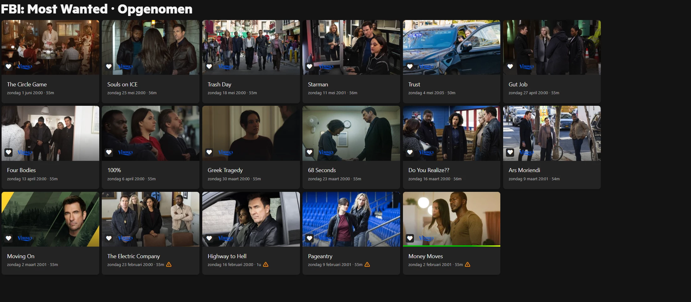 En bij afzonderlijke afleveringen staat de waarschuwing toch wel?