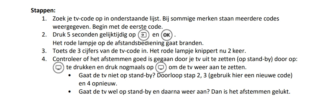 Codes om tv's van PEAQ te koppelen aan de KPN afstandsbediening