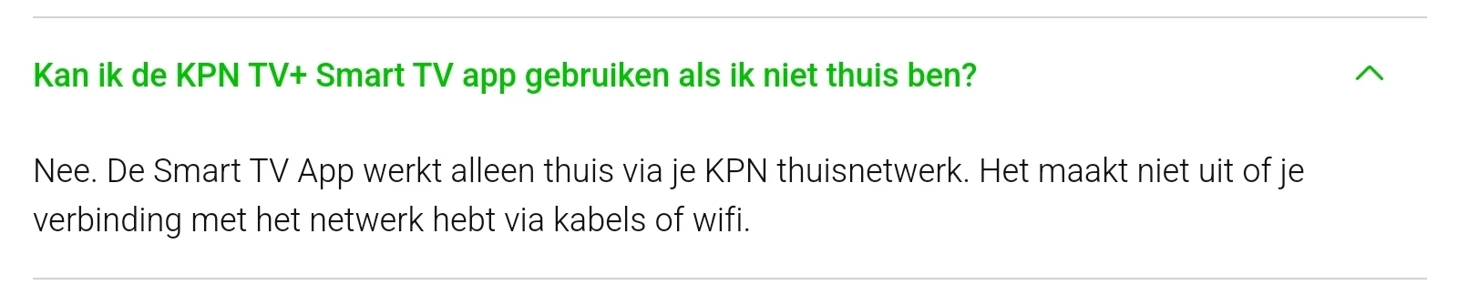 Dus wij kopen de tv en krijgen helaas de melding dat we op het thuisnetwerk van kpn moeten zijn om het te gebruiken.