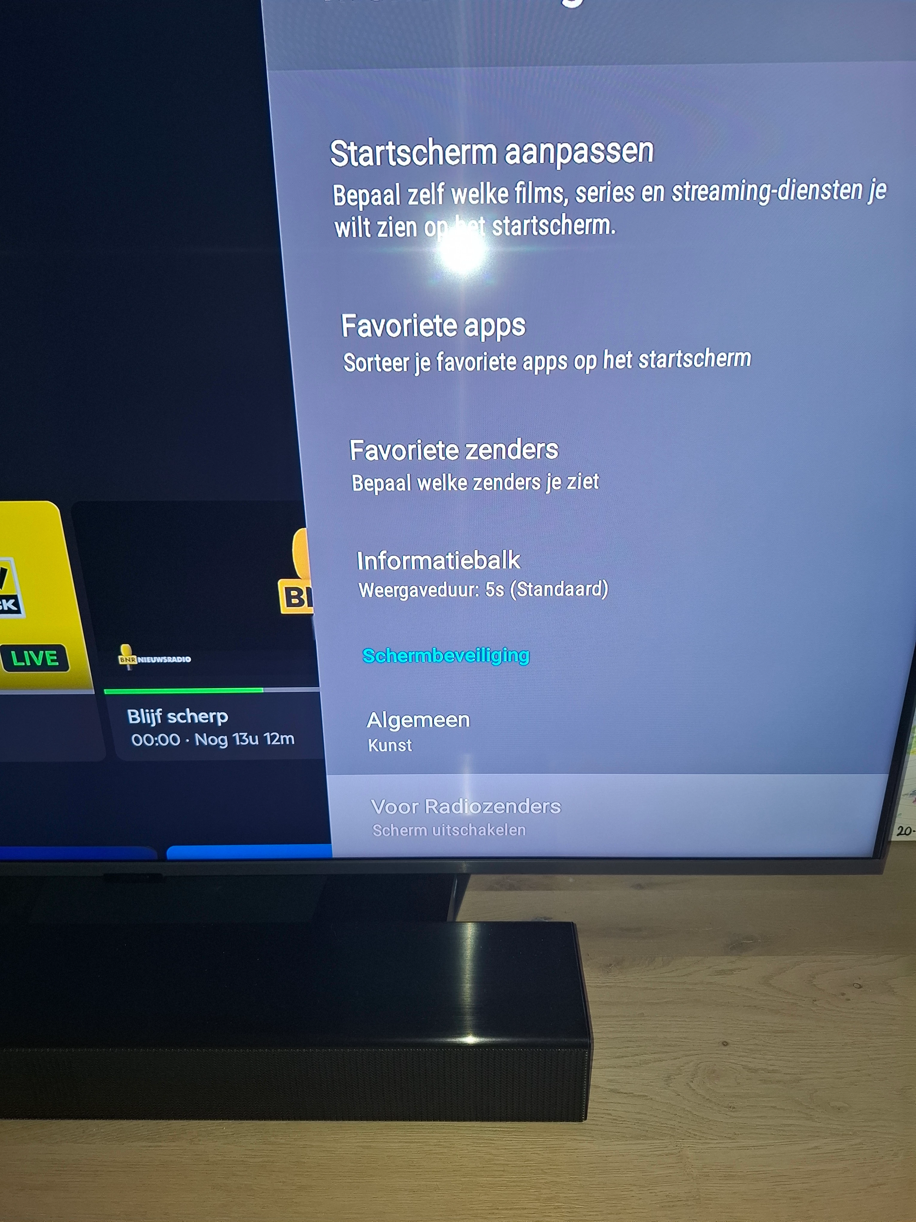 ja, ik kijk bij radiozenders en de optie schermbeveiliging staat haardvuur er niet bij. Ik baal ervan.