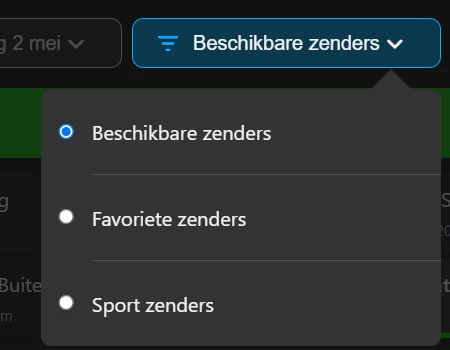 Die optie is er trouwens ook niet als ik uitlog. Dan staat ie ook standaard op ‘Beschikbare zenders’, maar dan staan die zenders wel in de gids.