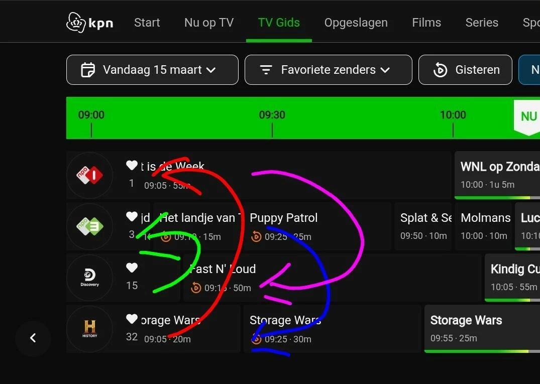 Dat gaat niet alleen om de positie in de zenderlijst maar ook om andere dingen zoals bijvoorbeeld het niet meer of minder kunnen doorspoelen van reclame bij zelf oogemomen programma;s. Dit is nog niet bij KPN maar bijvoorbeeld wel bij Ziggo en Delta het geval. Maar wat niet is bij KPN dat kan natuurlijk nog komen als providers en hun klanten de tv-zenders vrij baan geven.