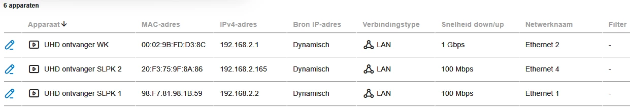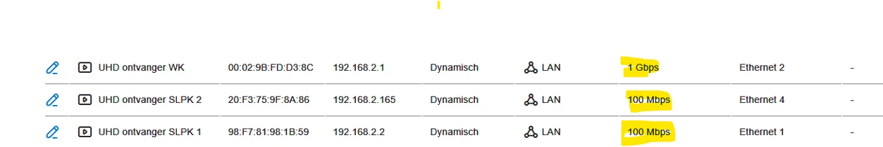 Ik zie 1 ontvanger die op 1 Gbps werkt. Dat kan niet eens. Want alle tv ontvangers van KPN werken op 100 mbit.