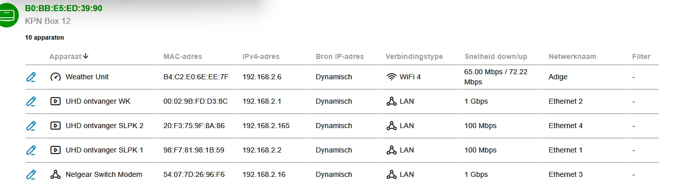 Dit zijn de apparaten die aangesloten zijn. Modem geeft niet aan hoe.