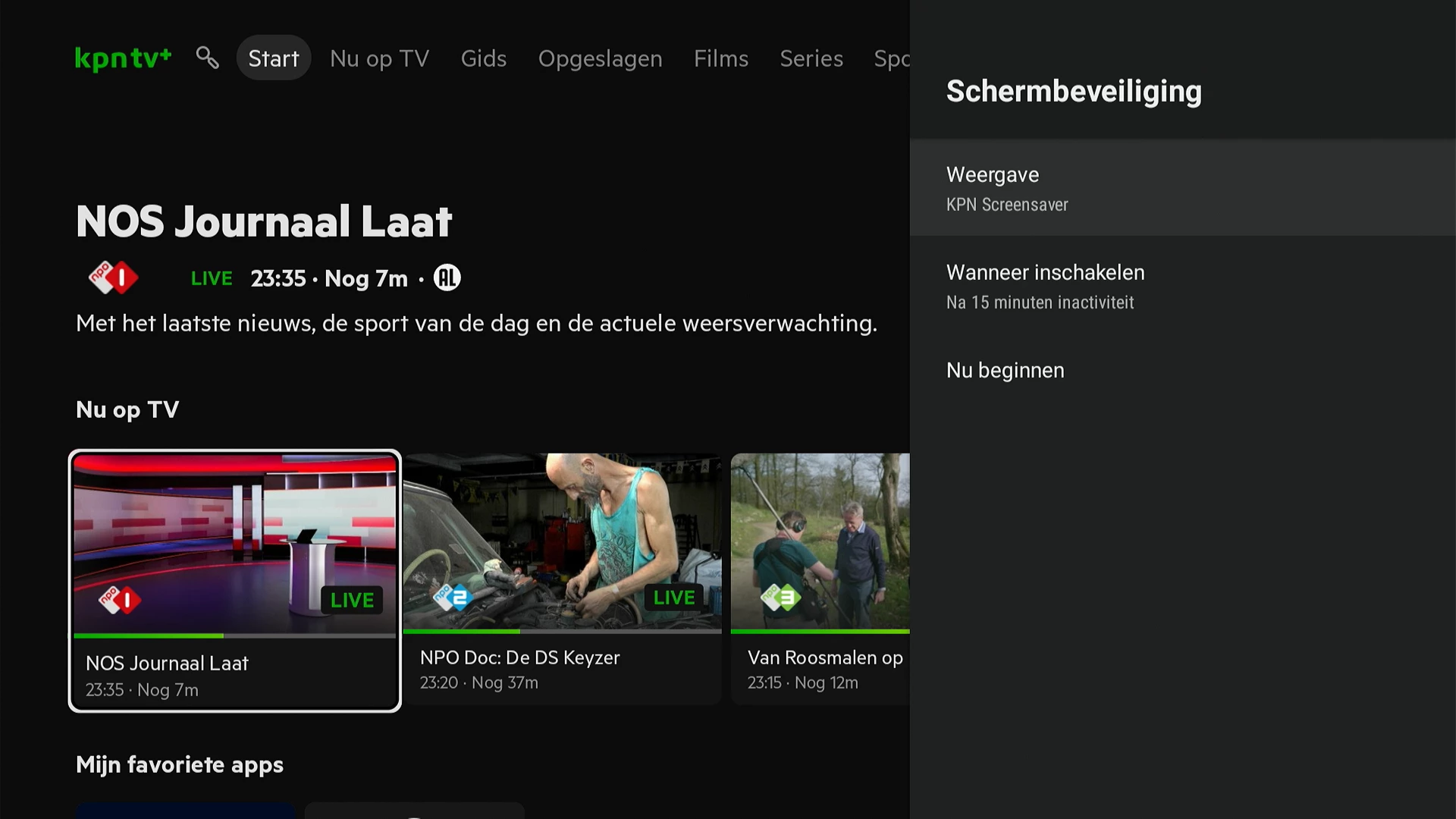 Ik neem hem mee, maar ik verwacht dat dit niet gaat. De gids is een soort van overlay die opgeroepen wordt binnen het afspeeldeel van de app. Dus dan kan het beeld en geluid door blijven lopen in de bovenhoek. Maar het opname overzicht, en de instellingen en al dat soort plekken zitten daar buiten, dus je verlaat de player als je naar een van die plekken gaat.