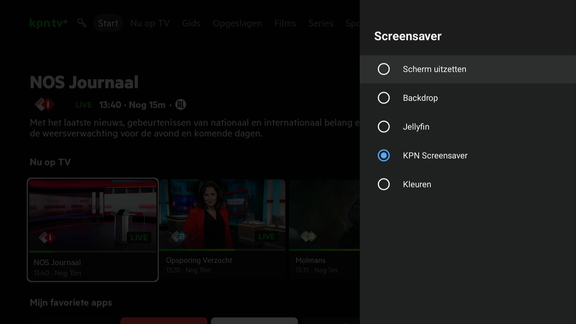 Voor Radio hebben we aparte schermbeveiligingsinstellingen (te vinden in het Menu Weergave). Als ik hier op mijn TV+ Box kijk zie ik alleen opties voor KPN screensaver keuzes, zenderlogo of zwart scherm. En ook als ik een niet-KPN screensaver heb ingesteld als algemene screensaver, krijg ik bij radio direct de specifieke screensaver die bij de radio screensaver instellingen staat. Ik neem het mee als wens naar het team.
