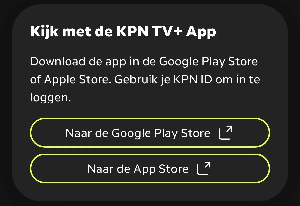 Heb op een andere TV een KPN ontvanger, dat functioneert prima. De app op die TV is wel beschikbaar maar loopt af en toe even vast, en loopt standaard vast na een bepaalde tijd programma gemist terugkijken. Via de KPN ontvanger heb ik daar geen last van.