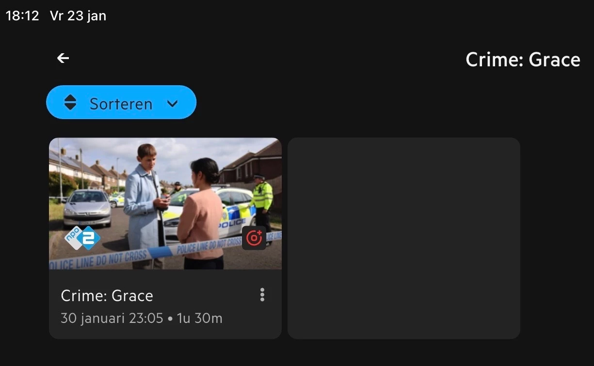 Vanwege je “zeer waarschijnlijk”: je ziet die serieopname dus ook niet in de ontvanger (of op tv.kpn.com)? Ofwel: waar je in de app die grijze tegel ziet, zie je helemaal niks op andere plekken?