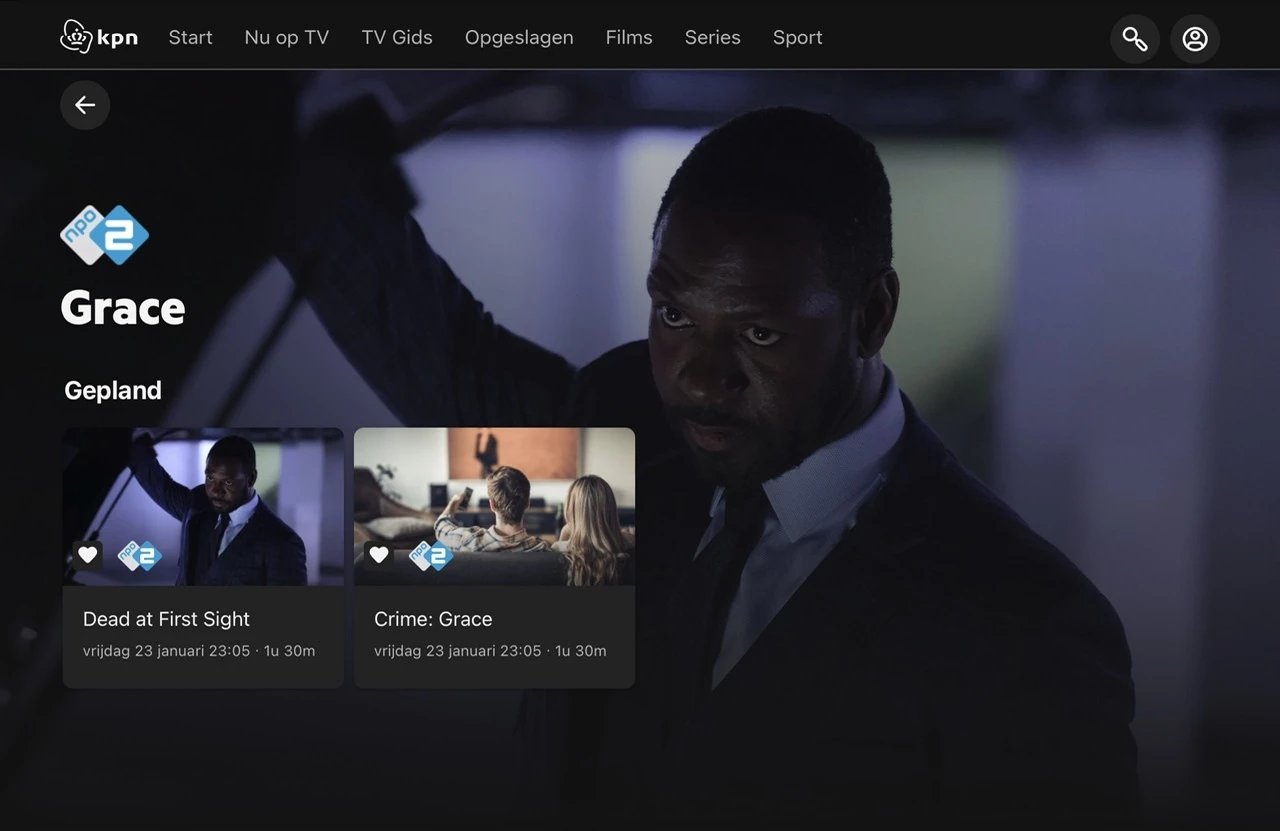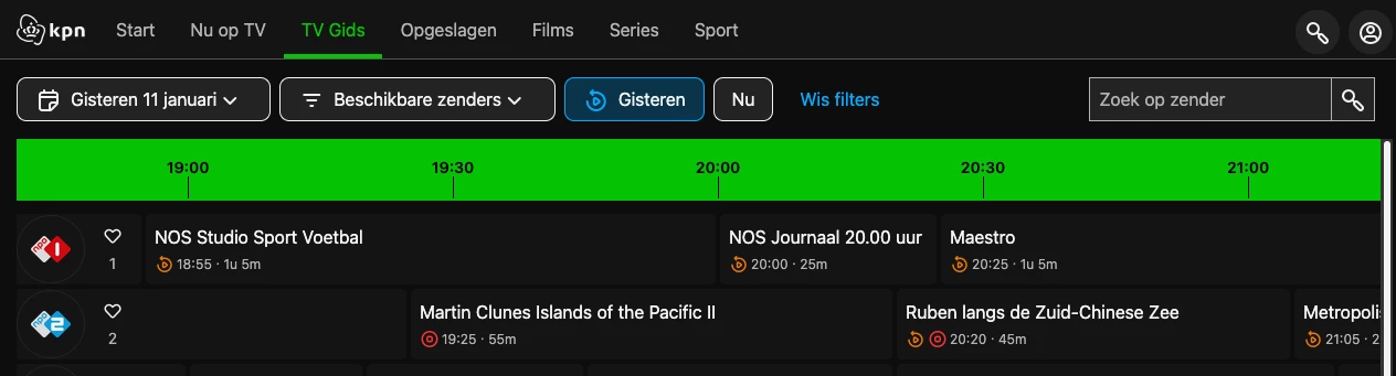 Screenshots van tv.kpn.com, maar ook zichtbaar in de Android telefoon app: