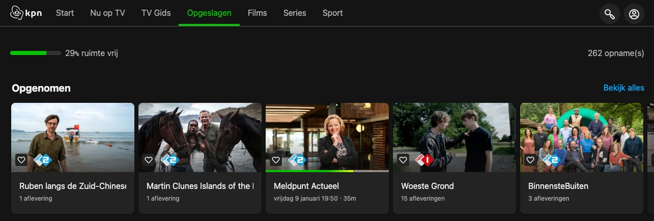 En als je het vergelijkt met wat je elders ziet (in de ontvanger of op tv.kpn.com), mis je dan iets? (Dat is misschien niet te doen als je veel opnames hebt.)