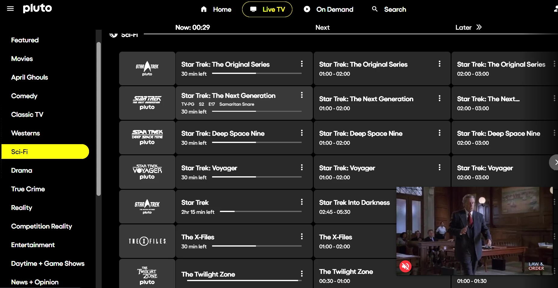 Voor Sci-Fi kan men PlutoTV gebruiken, niet de beste beeld kwaliteit, misschien nog slechter dan SDR, maar dan veel kanalen.