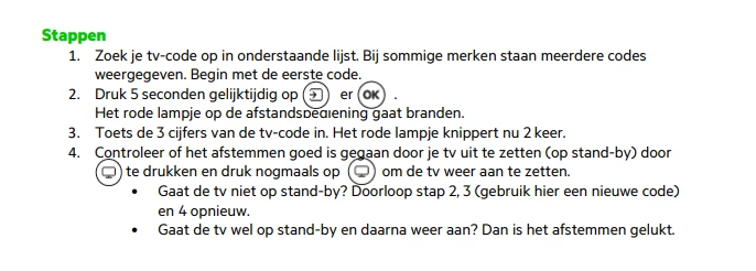 Ik heb ze allemaal geprobeerd maar geen een werkt voor mijn tv , ik heb de t4h afstandsbediening.