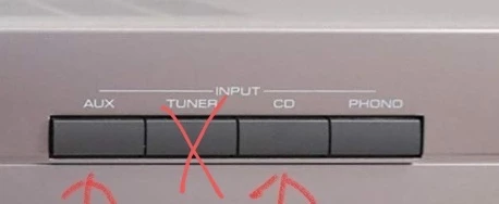 ...dan moet je de versterker op “cd” zetten. En daarna op de KPN-ontvanger de gewenste radiozender kiezen.