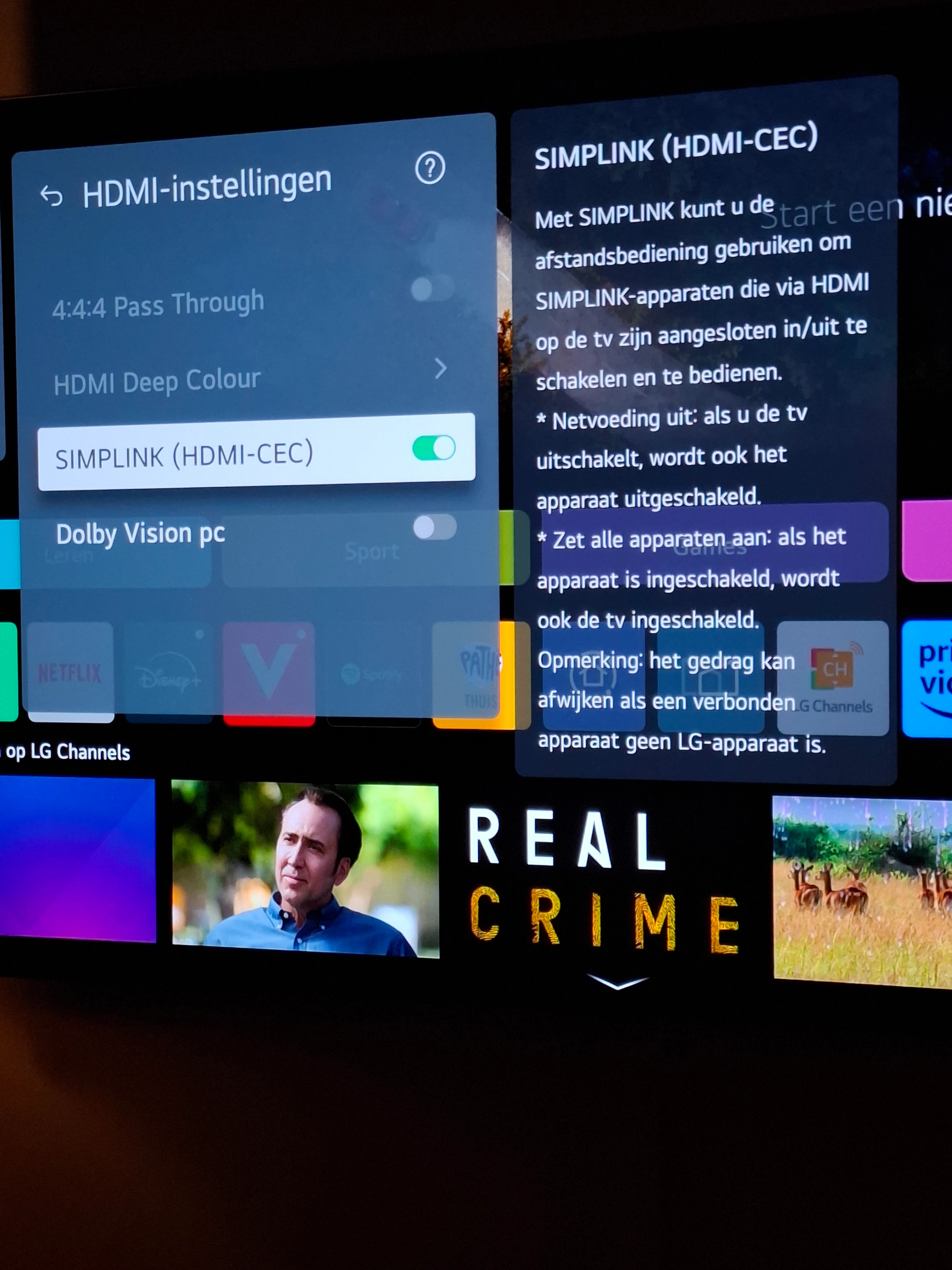 Je hebt al gelezen dat CEC aan staat, dat is goed. Maar soms moet je nog extra instellingen aanpassen, zoals het aanpassen van de HDMI-CEC-instellingen of het selecteren van de juiste ingangsbron via de tv-menu’s. Ik heb onderstaande pagina's gevonden op de website van LG. Probeer dit eens
