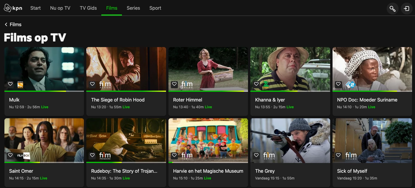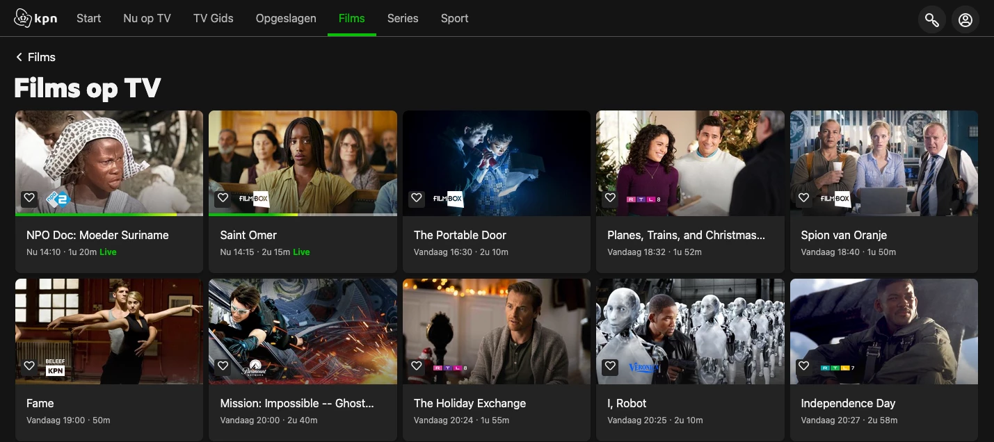 Gids op tv.kpn.com: alleen films uit standaardpakket indien wel ingelogd
